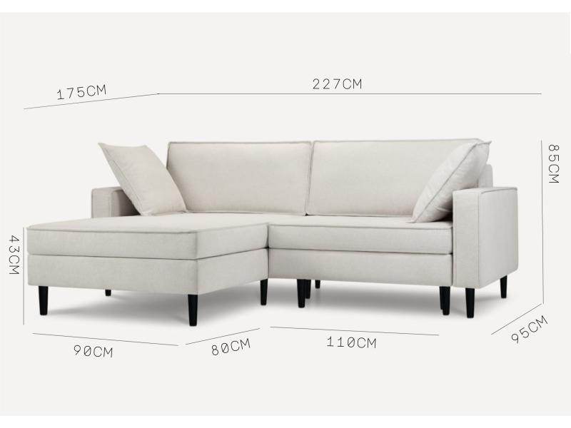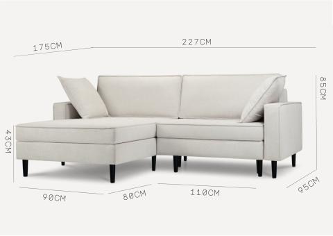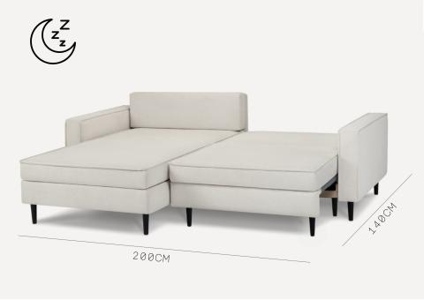Dane techniczne: Mały skandynawski narożnik Beżowy z funkcją spania OSLO LEWY