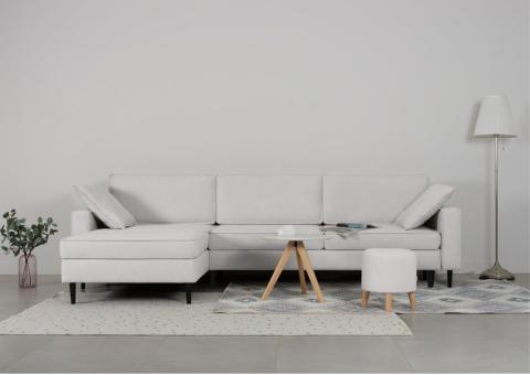 Duży skandynawski narożnik Beżowy z funkcją spania OSLO LEWY