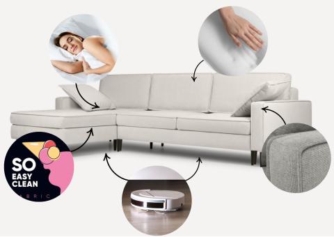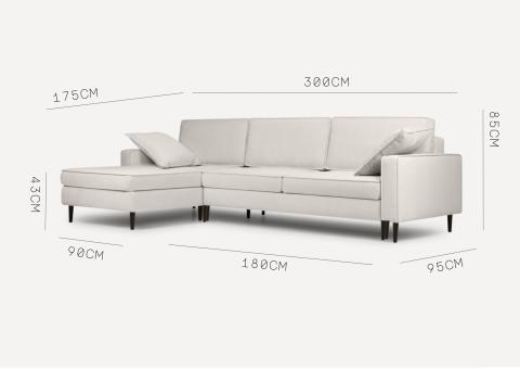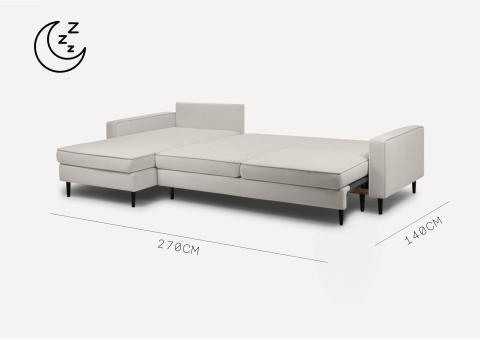 Dane techniczne: Duży skandynawski narożnik Beżowy z funkcją spania OSLO LEWY