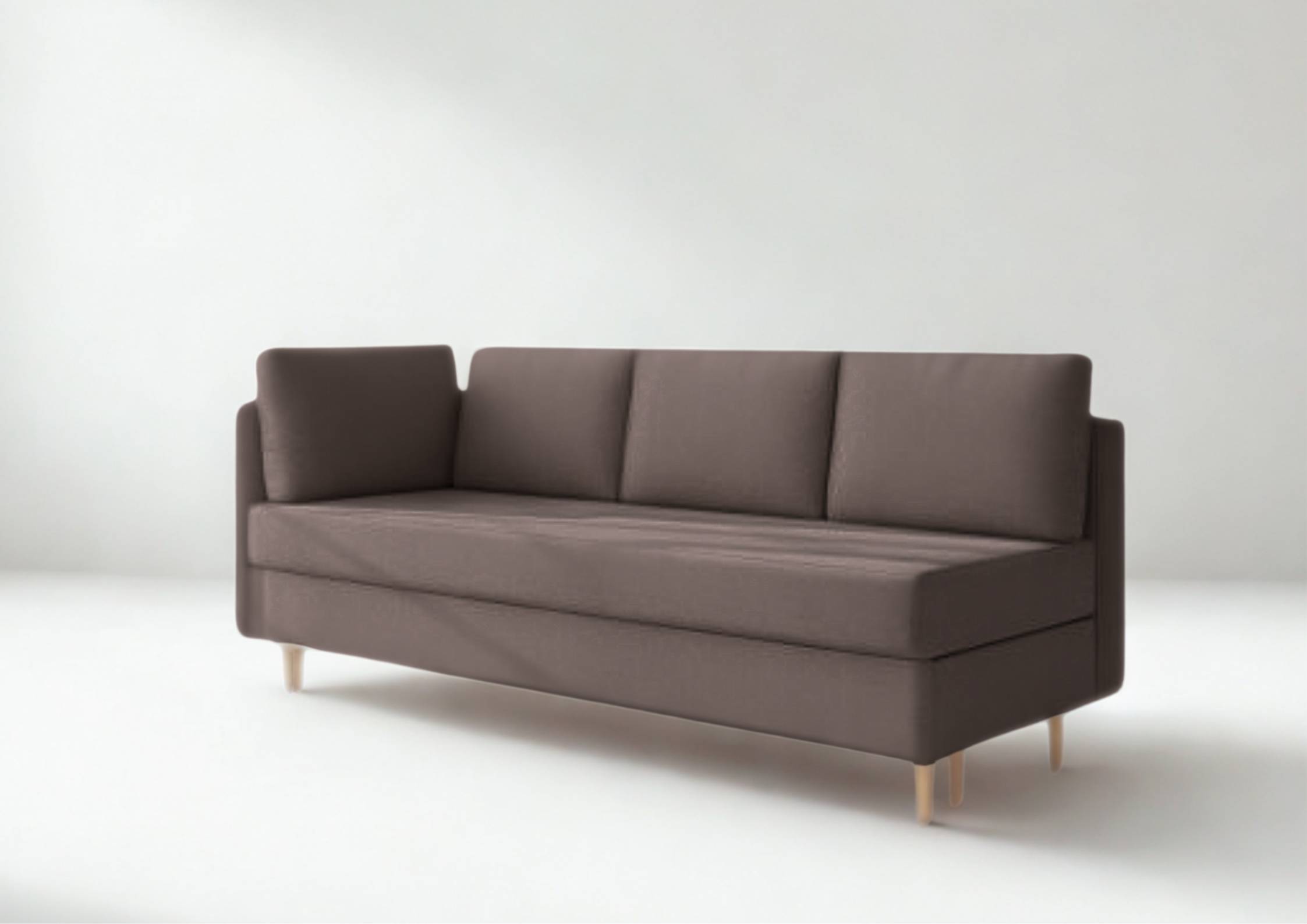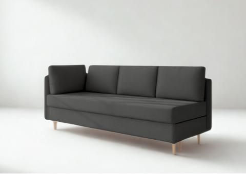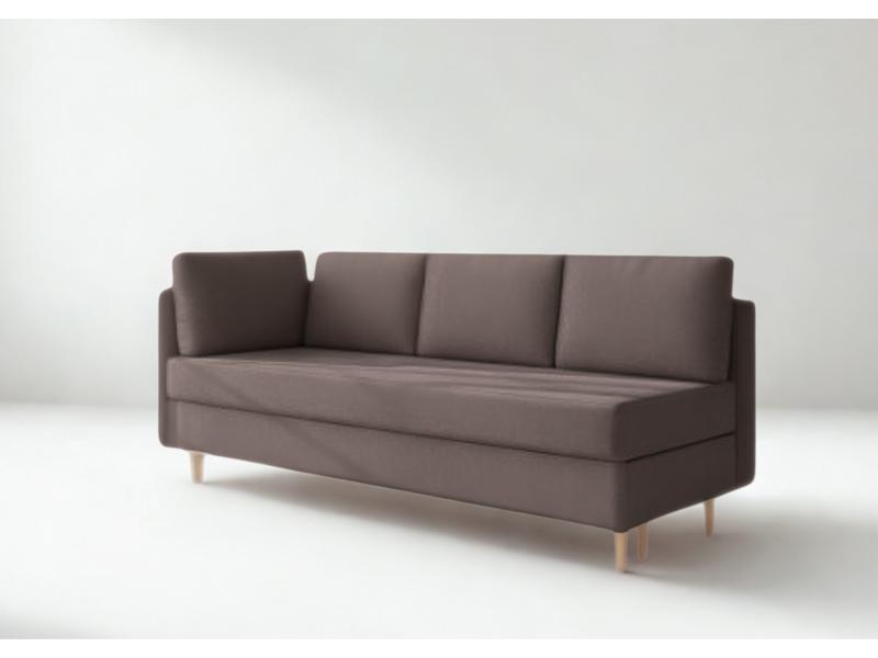 Lewa skandynawska sofa Prato wykonywana jest na drewnianych nogach w kolorze naturalnym. Możliwe jest wykonanie innego koloru nóg po kontakcie i ustaleniu z nami tej kwestii. Sofa posiada funkcję spania 190x140cm i duży pojemnik na pościel pod siedziskiem.