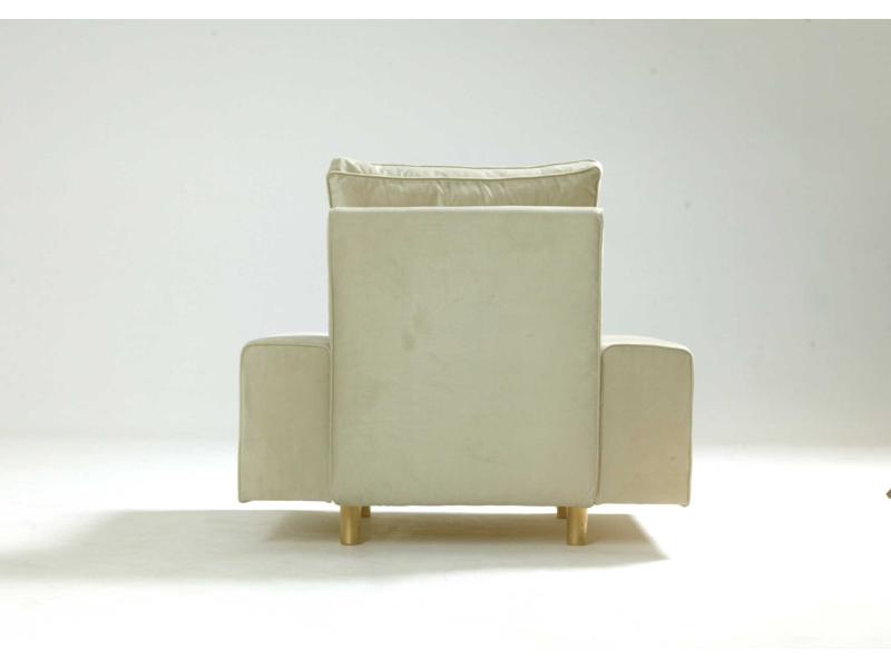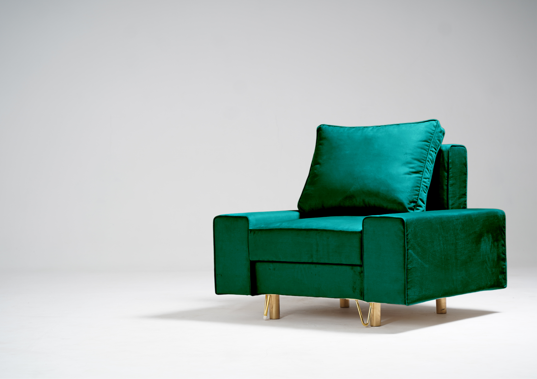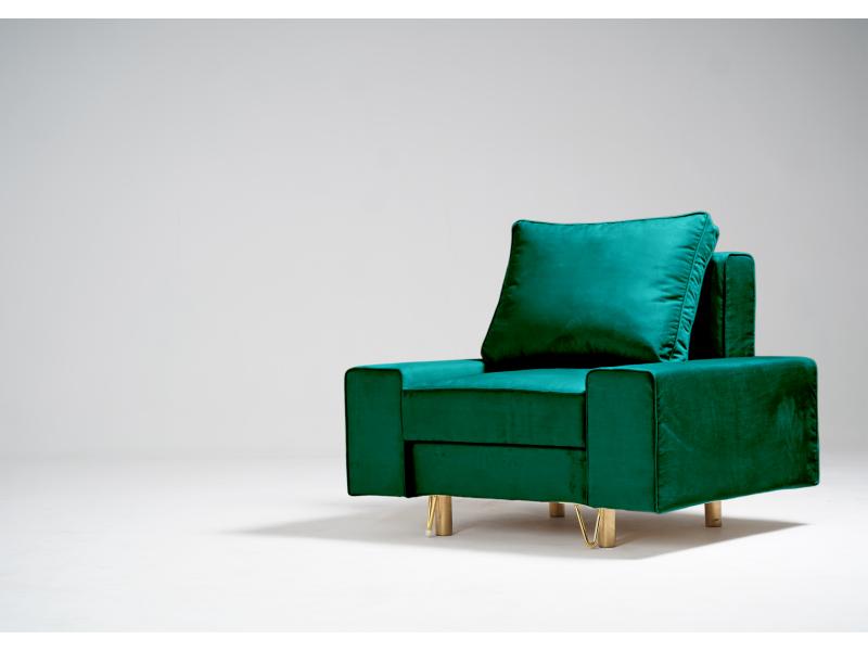 Tapicerowany Fotel z kolekcji STINO to fotel elegancki fotel na złotych metalowych nogach, który kryje pod siedziskiem pojemnik na drobiazgi. W kolekcji Stino dostępny jest również fotel rozkładany, sofa, pufa oraz narożnik.