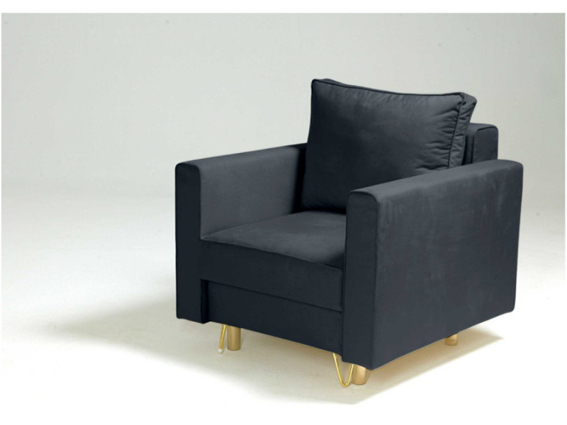 Tapicerowany Fotel z kolekcji DES to elegancki fotel na złotych metalowych nogach, który kryje pod siedziskiem pojemnik na drobiazgi. W kolekcji DES dostępny jest również fotel rozkładany, sofa, pufa oraz narożnik.