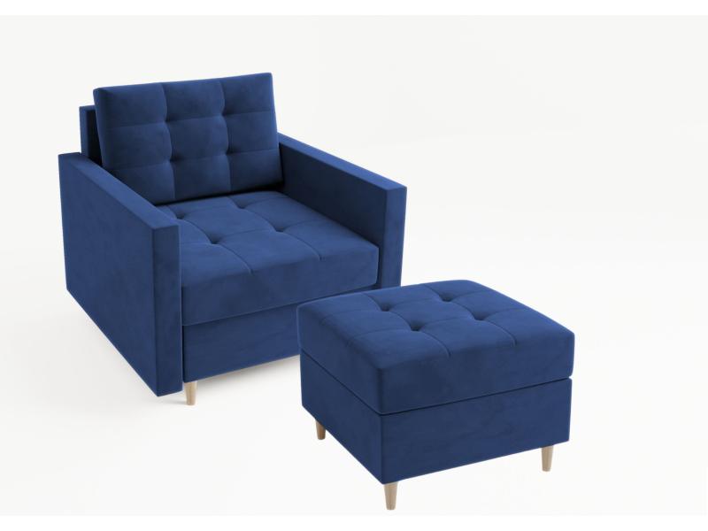 Fotel Tapicerowany z pufą VIDO Granatowy Welur Skandynawski do Salonu