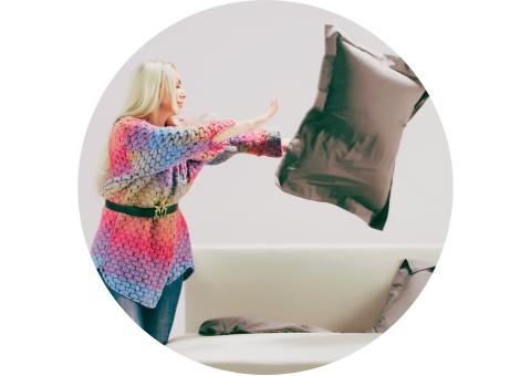 - Duża poduszka wypełniana granulatem piankowym tworzy stabilne oparcie.