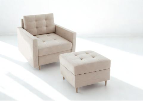 Dane techniczne: Fotel Tapicerowany z pufą VIDO Beżowy Welur Skandynawski do Salonu