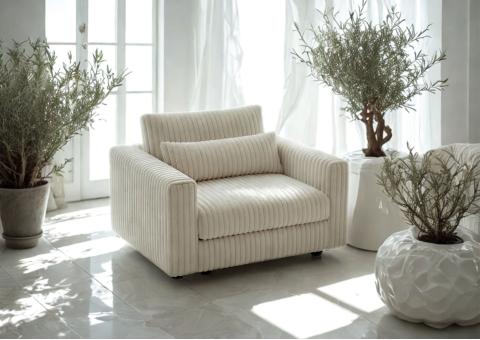 Fotel TILIA to przestronny i nowoczesny mebel do salonu, stworzony z myślą o komforcie. Duża powierzchnia siedziska, aż 80cm oraz ergonomiczna poduszka zapewnią wygodę podczas codziennego wypoczynku, a ponadczasowa forma doskonale wpisuje się w nowoczesne aranżacje wnętrz.