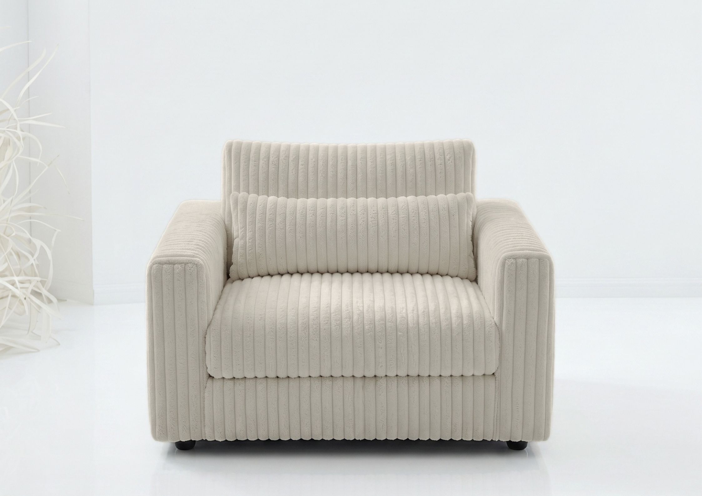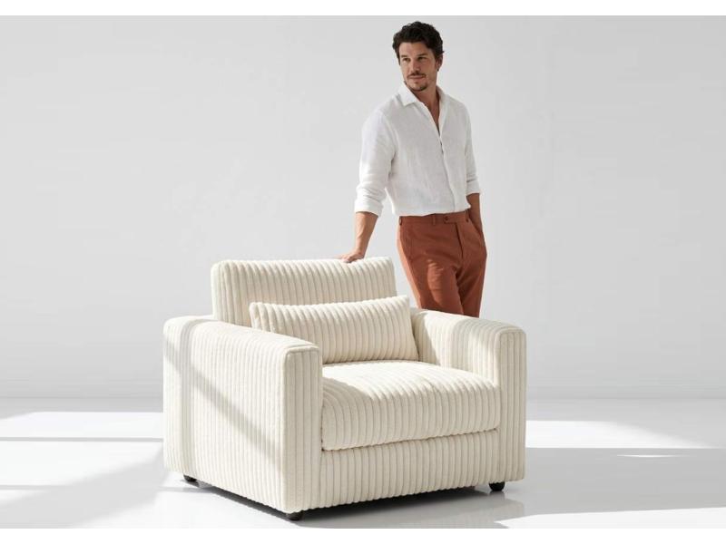 Fotel TILIA to przestronny i nowoczesny mebel do salonu, stworzony z myślą o komforcie. Duża powierzchnia siedziska, aż 80cm oraz ergonomiczna poduszka zapewnią wygodę podczas codziennego wypoczynku, a ponadczasowa forma doskonale wpisuje się w nowoczesne aranżacje wnętrz.