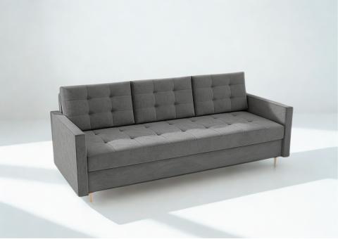 Pikowana grafitowa sofa na drewnianych nóżkach Vido - Funkcja spania