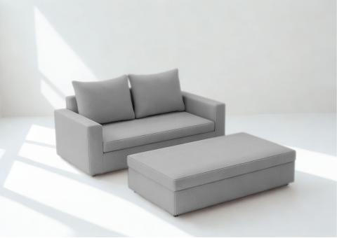 Dwa pojemniki na pościel umieszczone pod siedziskami zapewniają dodatkową przestrzeń do przechowywania, co sprawia, że jest to idealne rozwiązanie dla tych, którzy szukają mebla zarówno eleganckiego, jak i praktycznego.