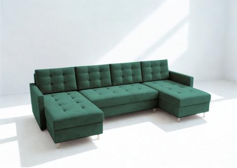 Narożnik Arkadia Zielony: Funkcja Spania i 2 Pojemniki na Pościel dla Doskonałej Praktyczności!