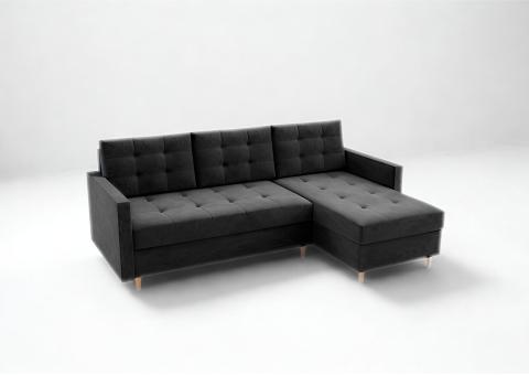 Odkryj luksus i funkcjonalność w narożniku o szerokości do 210 cm, w eleganckim kolorze czarnym z materiału welurowego.