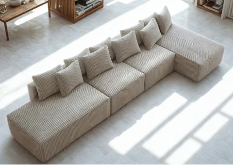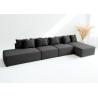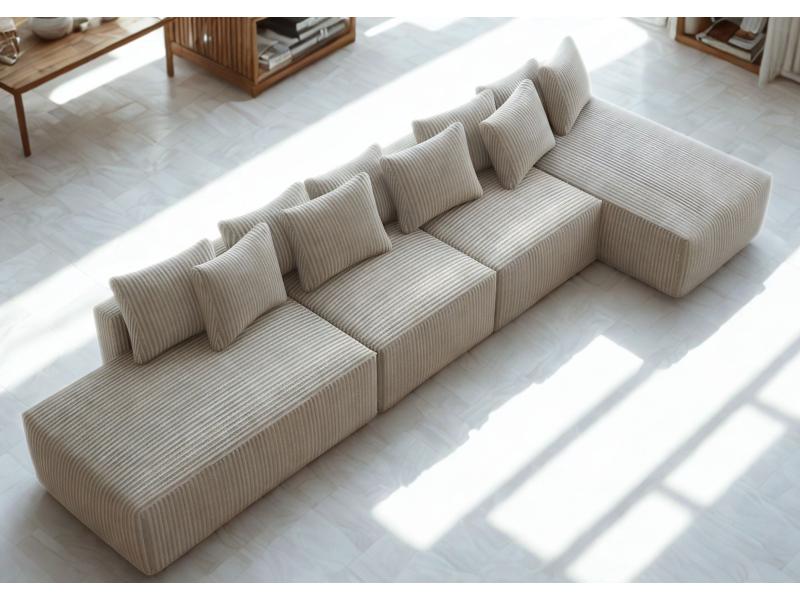 Dane techniczne: Prawy Stylowy Narożnik Sugoi w Stylu Loft - 373cm, Czarny welur, 9 Poduszek