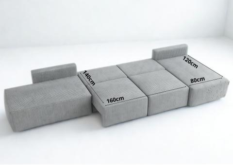 Dane techniczne: Prawy Narożnik Sugoi z Funkcją Spania - 373cm, Zielony, 9 Poduszek