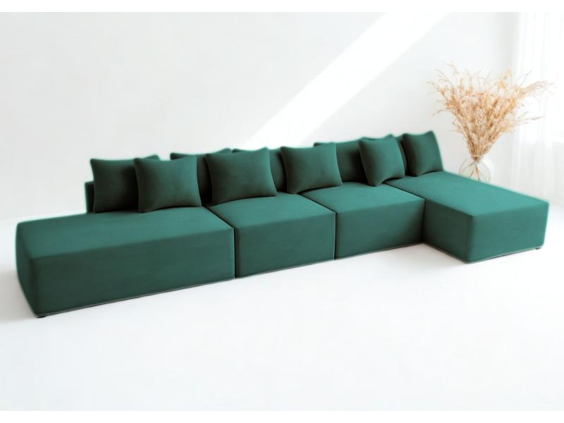 Prawy Narożnik Sugoi z Funkcją Spania - 373cm, Zielony, 9 Poduszek