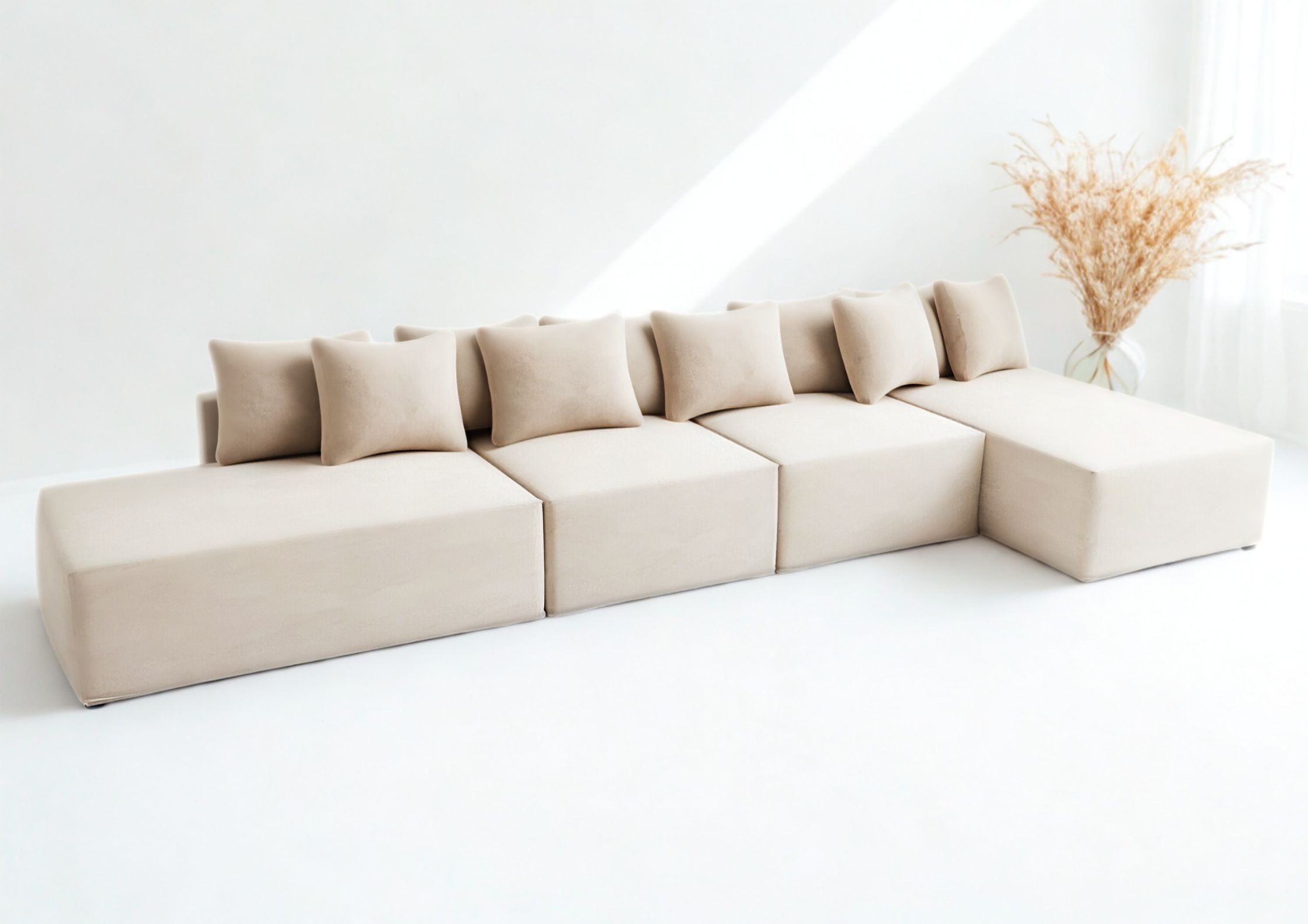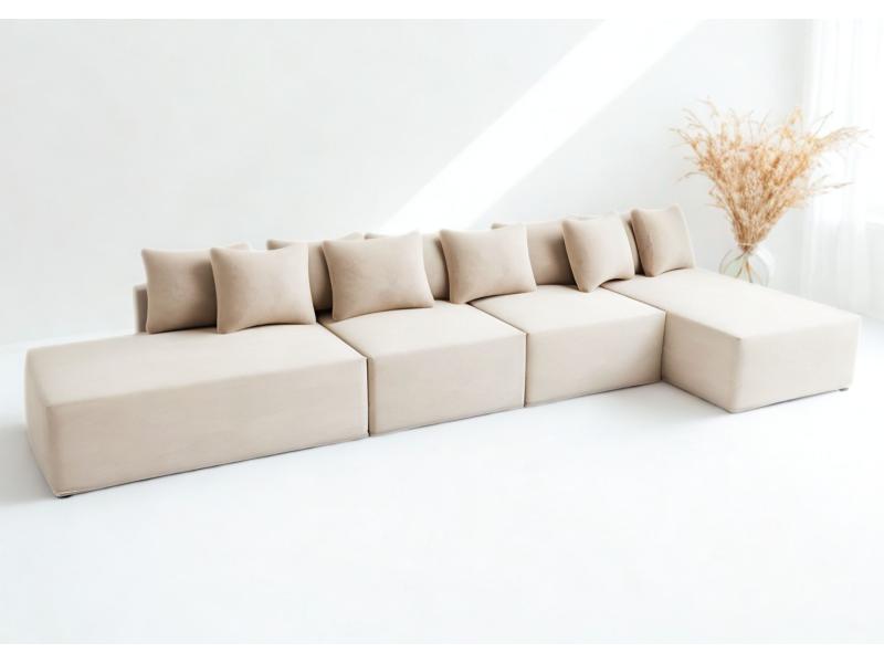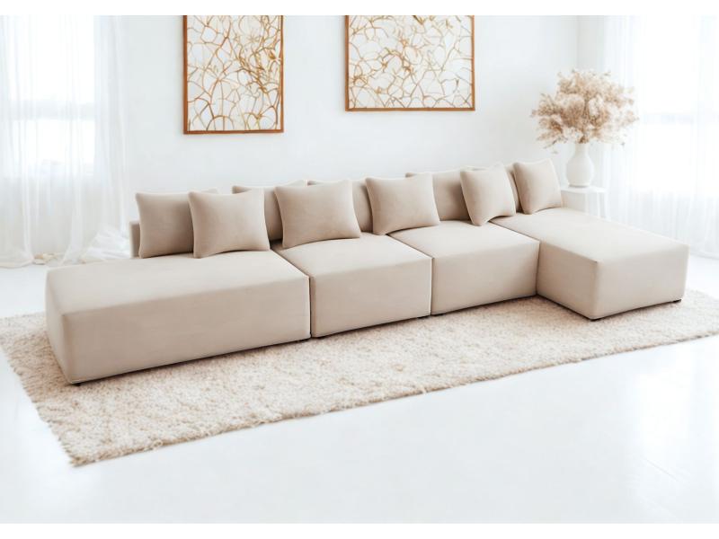 Welurowy Prawy Narożnik rozkładany Sugoi - Duży, Modułowy, Beżowy