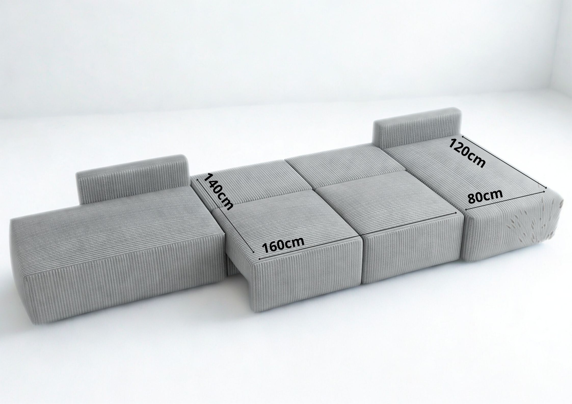 Dane techniczne: Welurowy Prawy Narożnik rozkładany Sugoi - Duży, Modułowy, Beżowy