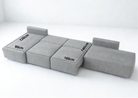 Dane techniczne: Lewy Narożnik Sugoi w Stylu Loft - Funkcja spania, Modułowy, 373cm, Beżowy