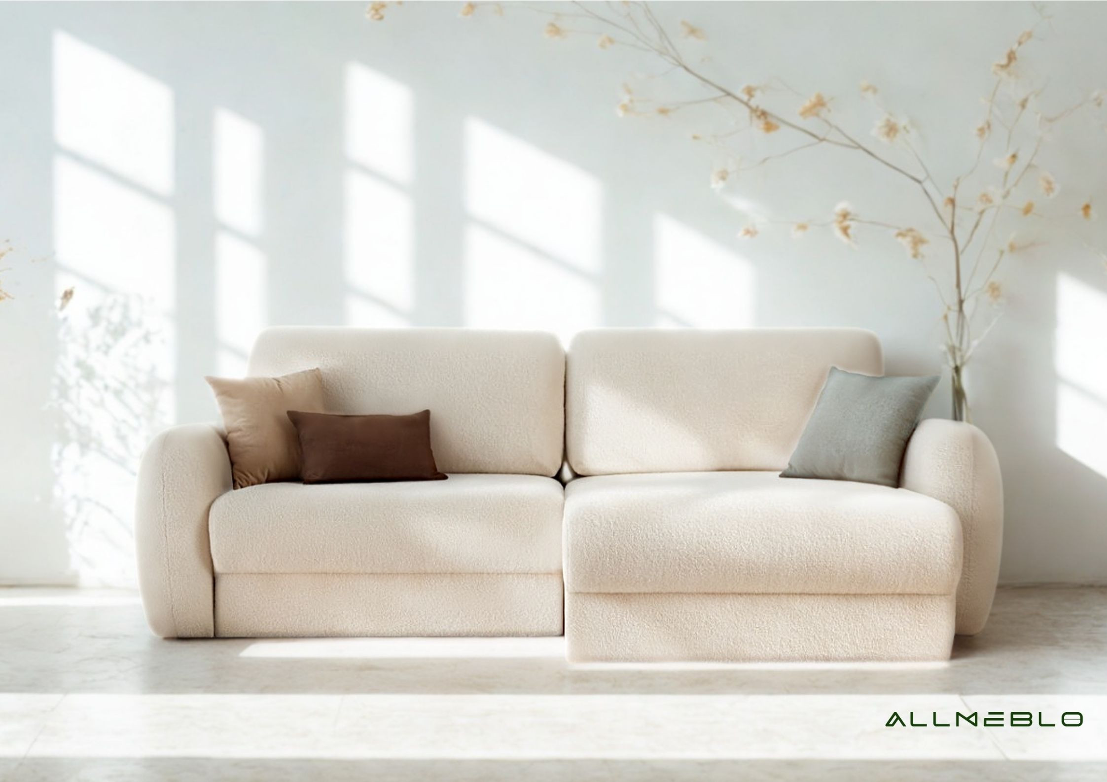 ⭐️Mały Narożnik Prawostronny Palla Beżowy funkcja spania Wypoczynkowy Salon