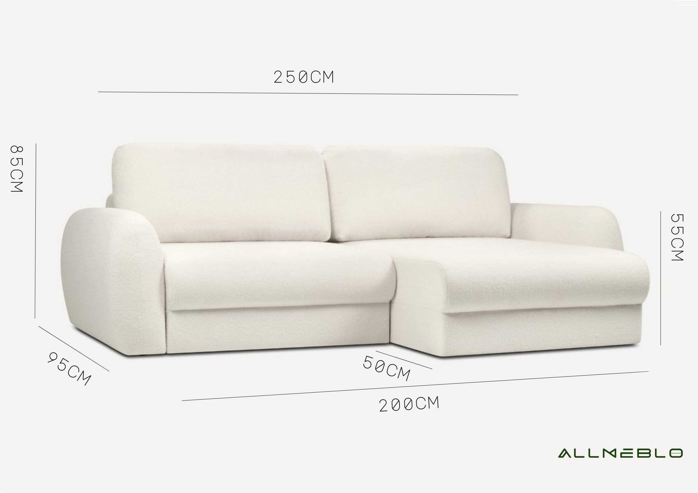 Dane techniczne: Mały Narożnik Rozkładany z Funkcją Spania Prawostronny Palla Beżowy