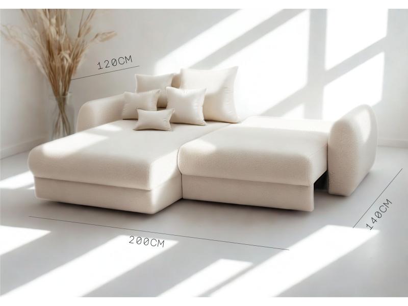 Mały narożnik lewostronny PALLA w kolorze beżowym to kompaktowy i funkcjonalny narożnik do salonu, idealny do mieszkań w bloku oraz nowoczesnych wnętrz w stylu loft. Model wyposażony jest w funkcję spania o powierzchni 140 × 240 cm oraz praktyczną skrzynię na pościel, co czyni go doskonałym wyborem do codziennego użytkowania. Komfort siedzenia i snu zapewniają sprężyny bonell na całej powierzchni spania, głębokie siedzisko oraz stabilna poduszka oparciowa. Narożnik wykonano z eleganckiego weluru MANILA w kolorze beżowym, który jest miękki w dotyku, odporny na mechacenie i łatwy w czyszczeniu.. Narożnik PALLA łączy nowoczesny design, wygodę i praktyczne rozwiązania, idealne do małego salonu lub pokoju dziennego.