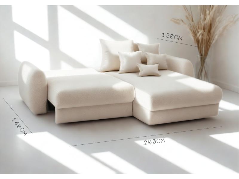 Mały narożnik prawostronny PALLA w kolorze beżowym to kompaktowy i funkcjonalny narożnik do salonu, idealny do mieszkań w bloku oraz nowoczesnych wnętrz w stylu loft. Model wyposażony jest w funkcję spania o powierzchni 140 × 240 cm oraz praktyczną skrzynię na pościel, co czyni go doskonałym wyborem do codziennego użytkowania. Komfort siedzenia i snu zapewniają sprężyny bonell na całej powierzchni spania, głębokie siedzisko oraz stabilna poduszka oparciowa. Narożnik wykonano z eleganckiego weluru MANILA w kolorze beżowym, który jest miękki w dotyku, odporny na mechacenie i łatwy w czyszczeniu.. Narożnik PALLA łączy nowoczesny design, wygodę i praktyczne rozwiązania, idealne do małego salonu lub pokoju dziennego.