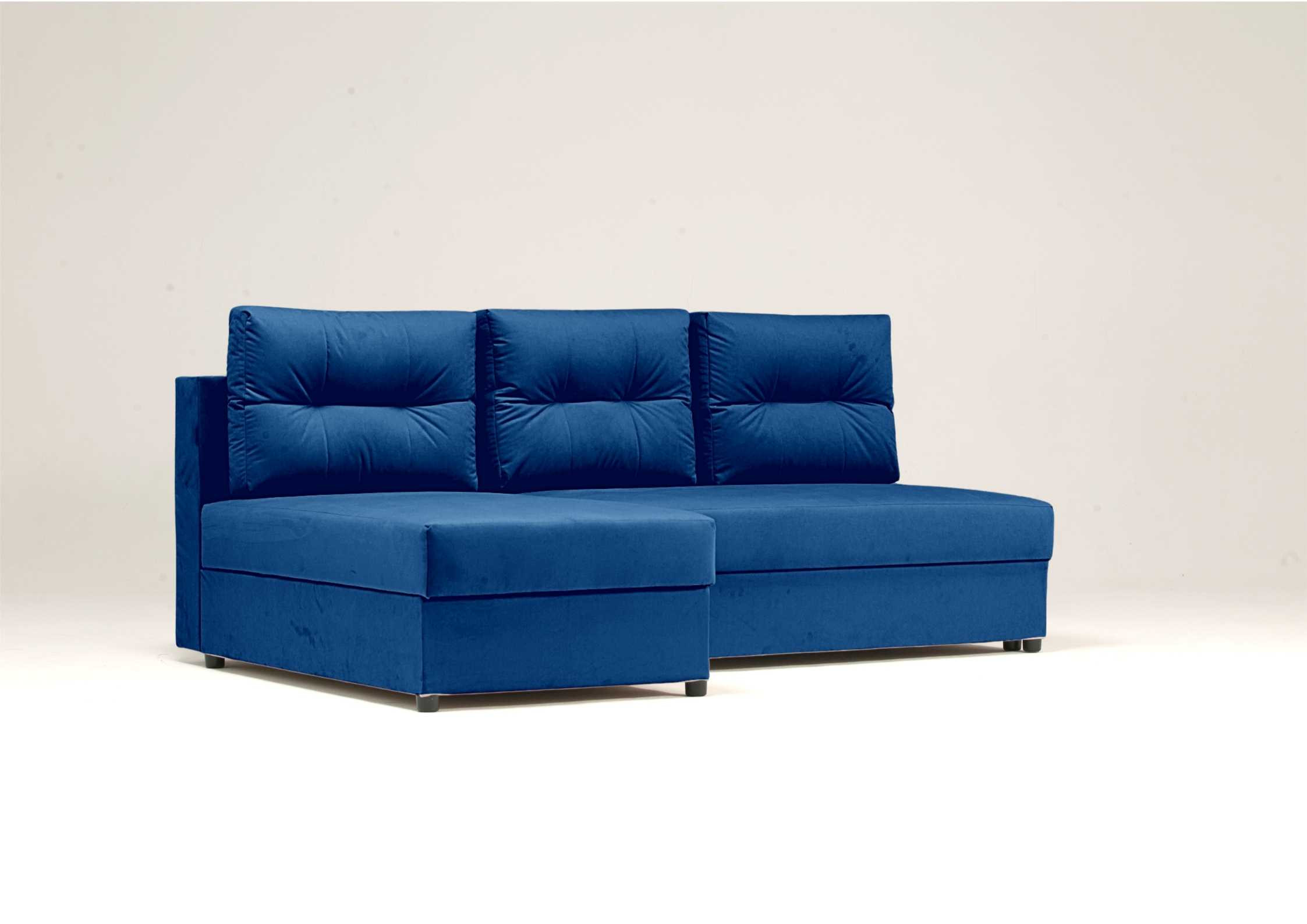 ⭐️Narożnik Rozkładany Lewostronny SKANDI Granatowy Funkcja Spania Salon
