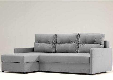 - Narożnik rozkładany z funkcją spania, który idealnie nada się zarówno do małego pokoju w bloku jak i w większych pomieszczeniach.