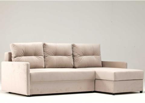 ⭐️Narożnik Rozkładany Prawy ARIA Beżowy Funkcja Spania Schowek Welur Salon