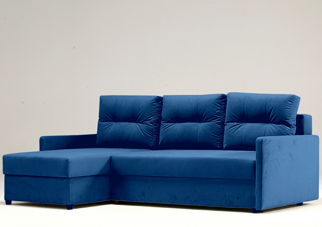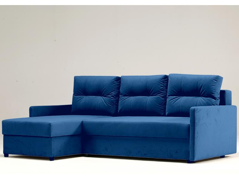Dane techniczne: Narożnik ARIA Lewy Granatowy Rozkładany Funkcja Spania Schowek Welur Salon