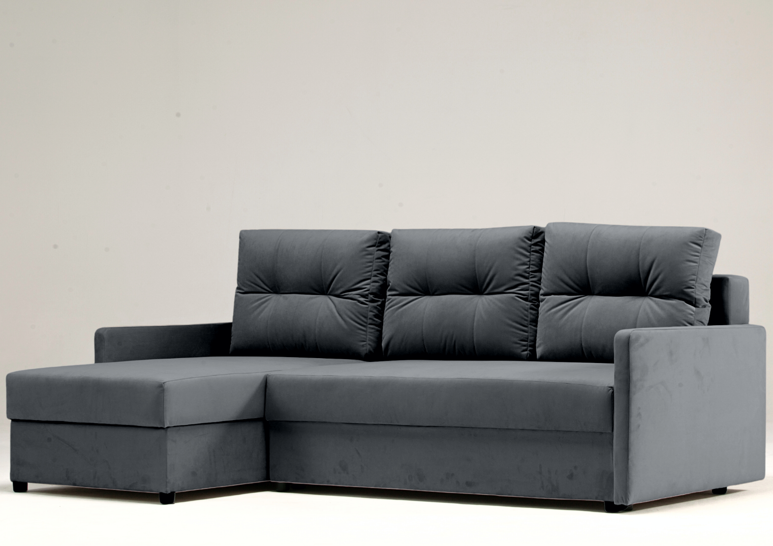 Dane techniczne: Narożnik ARIA Lewy Grafitowy Rozkładany Funkcja Spania Schowek Welur Salon