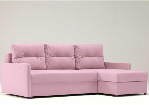 ⭐️Narożnik Rozkładany Prawy ARIA Różowy Funkcja Spania Schowek Welur Salon
