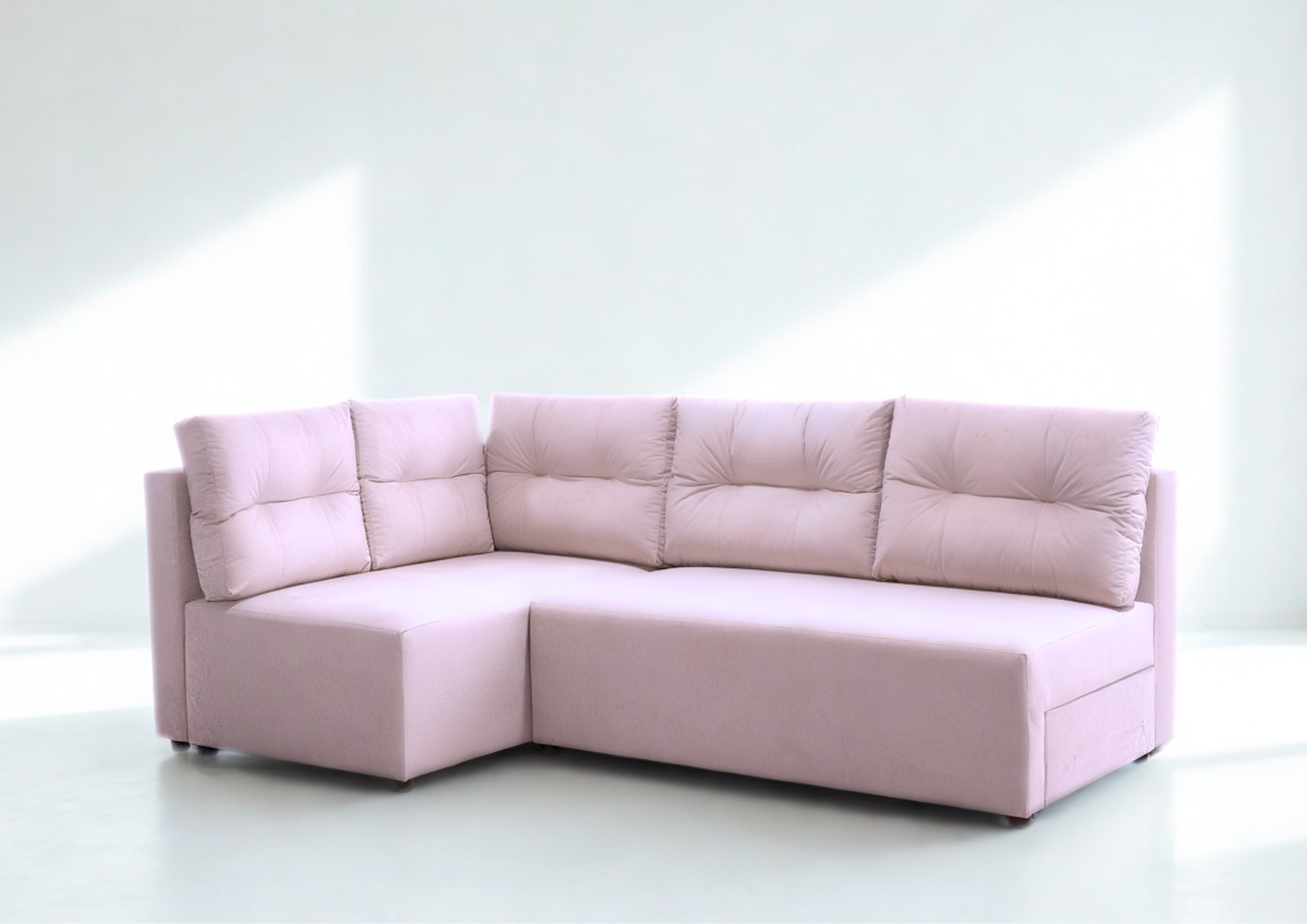 Narożnik PONO L Lewy Różowy Rozkładany Funkcja Spania Schowek Salon Welur