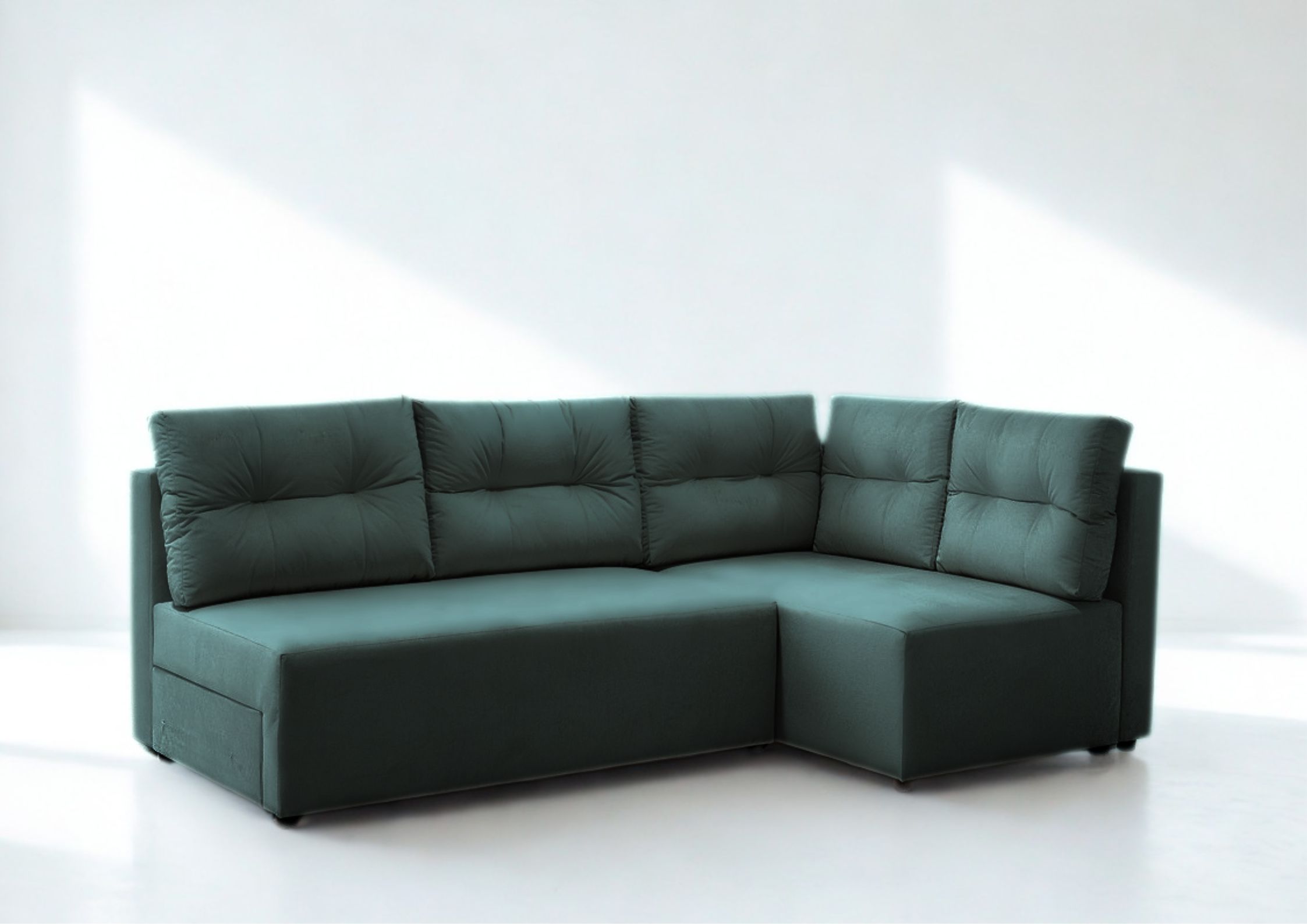 Narożnik PONO L Prawy Zielony Rozkładany Funkcja Spania Schowek Salon Welur