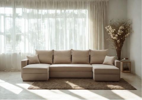 Duży narożnik do salonu ARLO U to nowoczesny mebel w kształcie litery „U”. Idealna propozycja dla tych, którzy szukają niezwykle dużego mebla, zdolnego pomieścić całą rodzinę i przyjaciół podczas wspólnych spotkań. Narożnik z pojemnikami na pościel. Narożnik rozkładany z dużą powierzchnią spania.