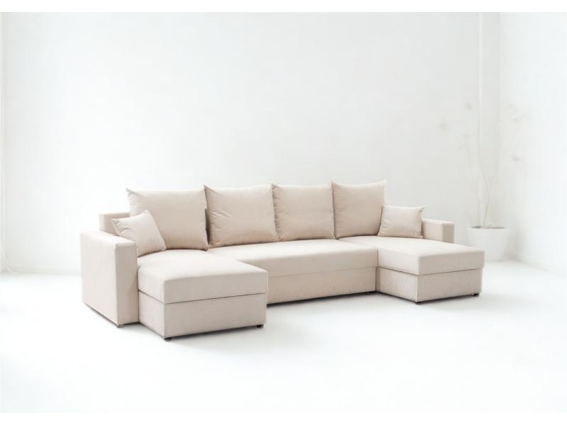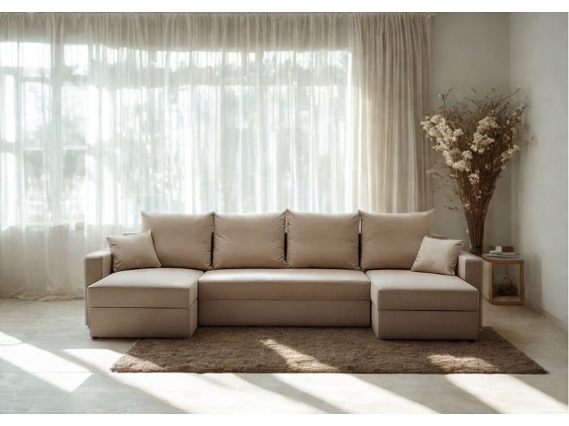 ⭐️Narożnik ARLO U Beżowy Rozkładany Funkcja Spania Schowki Duży Salon Welur