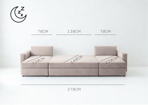 - Narożnik ARLO U wyposażamy w wygodną funckję spania o powierzchni 140x270cm.