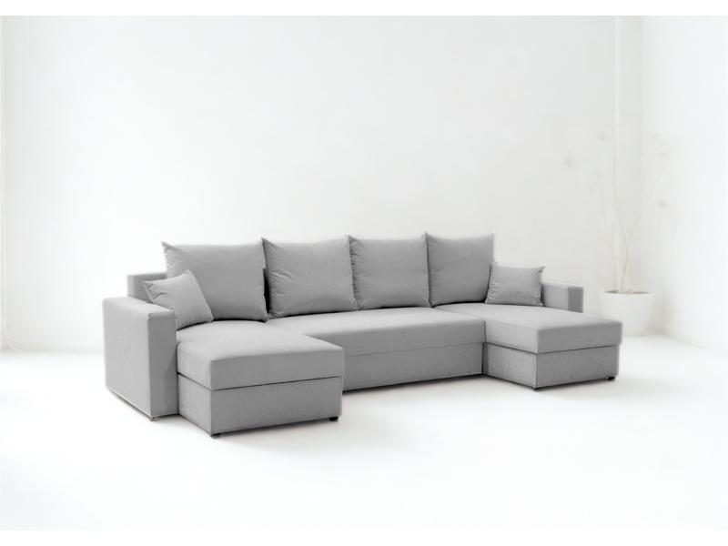 Duży narożnik do salonu ARLO U to nowoczesny mebel w kształcie litery „U”. Idealna propozycja dla tych, którzy szukają niezwykle dużego mebla, zdolnego pomieścić całą rodzinę i przyjaciół podczas wspólnych spotkań. Narożnik z pojemnikami na pościel. Narożnik rozkładany z dużą powierzchnią spania.