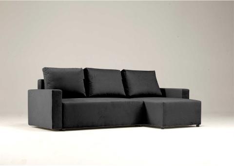 ⭐️Narożnik ARLO 2 Czarny Rozkładany Funkcja Spania Schowek Salon Welur