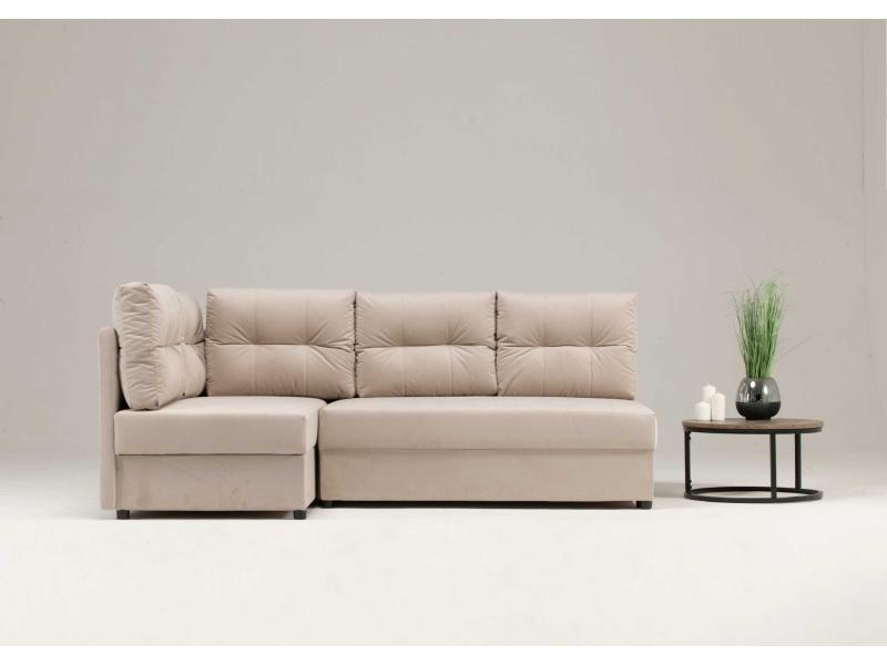 - Narożnik rozkładany z funkcją spania, który idealnie nada się zarówno do małego pokoju w bloku jak i w większych pomieszczeniach.
