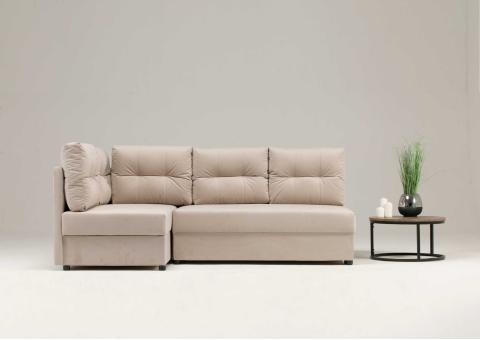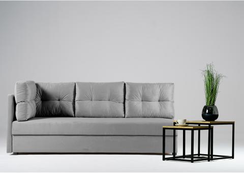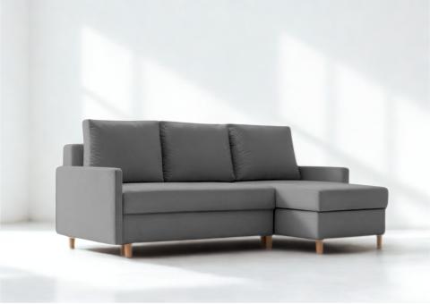 - Narożnik rozkładany z funkcją spania, który idealnie nada się zarówno do małego pokoju w bloku jak i w większych pomieszczeniach.