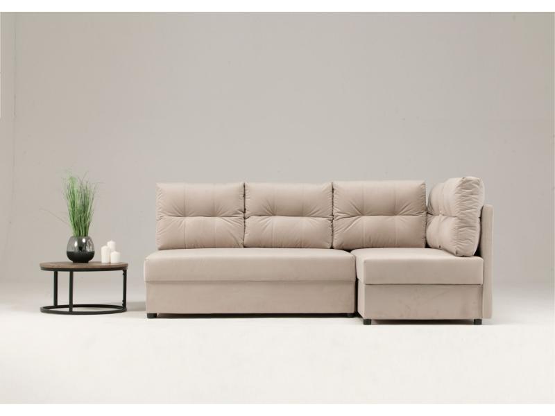 - Narożnik rozkładany z funkcją spania, który idealnie nada się zarówno do małego pokoju w bloku jak i w większych pomieszczeniach.