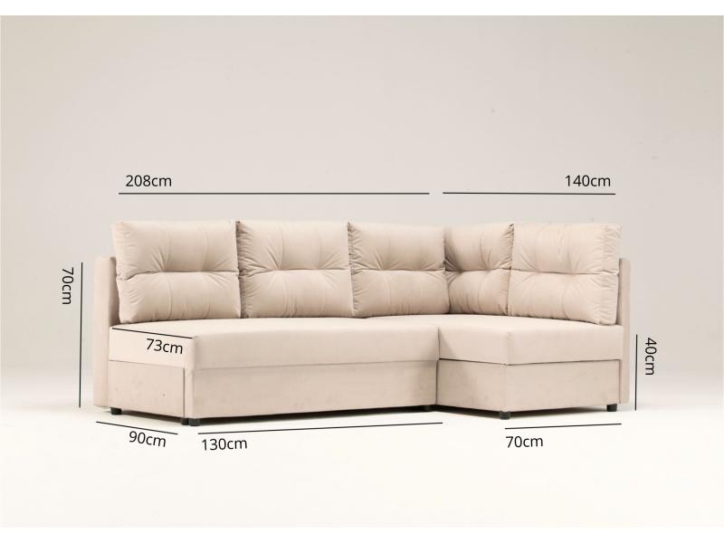 Narożnik MALA prawostronny to połączenie klasycznego designu z wysoką funkcjonalnością, idealne do salonu lub pokoju dziennego. Kompaktowe wymiary sprawiają, że świetnie sprawdza się w mniejszych wnętrzach, jednocześnie oferując funkcję spania o powierzchni 140×200 cm do codziennego użytkowania. Model wyposażono w dwa pojemniki na pościel, które zwiększają możliwości przechowywania, oraz wygodne, pikowane poduszki zapewniające komfortowy wypoczynek. Solidna konstrukcja i wypełnienie sprężynami bonell gwarantują trwałość oraz wygodę na lata. Uniwersalny, ponadczasowy design dopasowany do różnych aranżacji wnętrz sprawia, że narożnik MALA harmonijnie łączy estetykę z praktycznymi rozwiązaniami.
