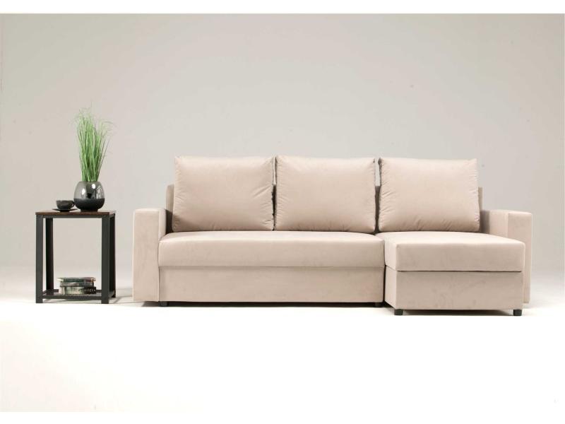 Narożnik Rozkładany Prawostronny ARLO Beżowy Funkcja Spania Salon Welur