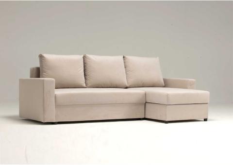 ⭐️Narożnik ARLO Beżowy Rozkładany Funkcja Spania 2 Schowki Pokój 225x140 cm