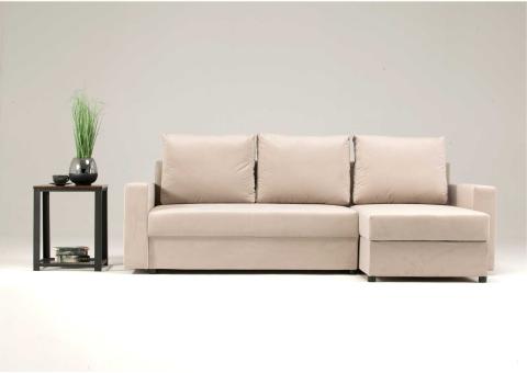 - Narożnik rozkładany z funkcją spania, który idealnie nada się zarówno do małego pokoju w bloku jak i w większych pomieszczeniach.