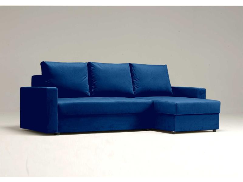 Narożnik Rozkładany Prawostronny ARLO Granatowy Funkcja Spania Salon Welur