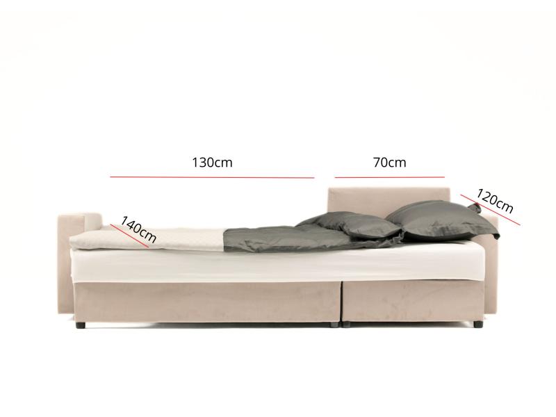 - Pod siedziskiem funkcyjnym jak i w narożnikowej części mebla zostały zamontowane 2 skrzynie na pościel, dzięki czemu zyskują Państwo dużą powierzchnię do przechowywania.