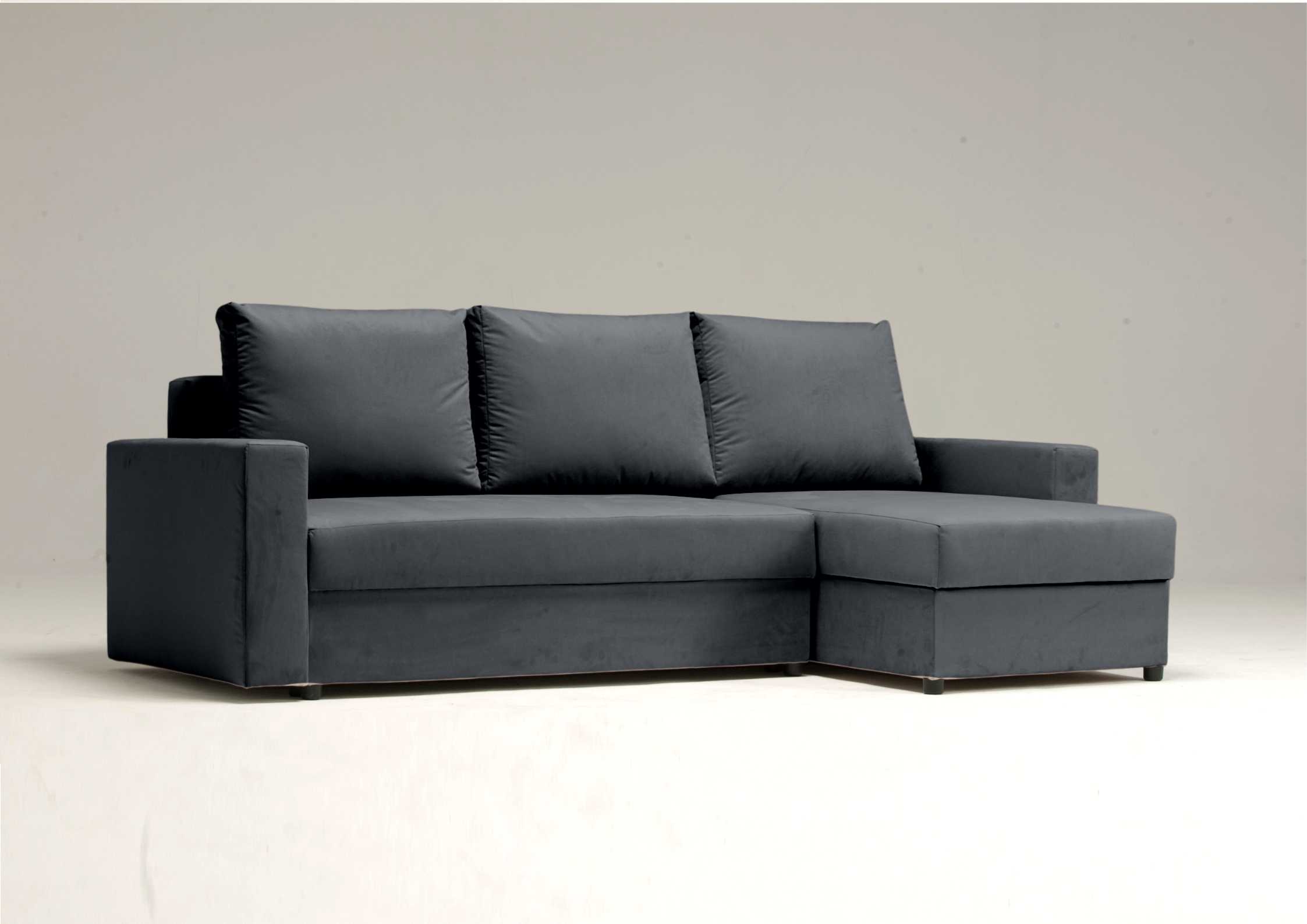 Narożnik Rozkładany Prawostronny ARLO Grafitowy Funkcja Spania Salon Welur