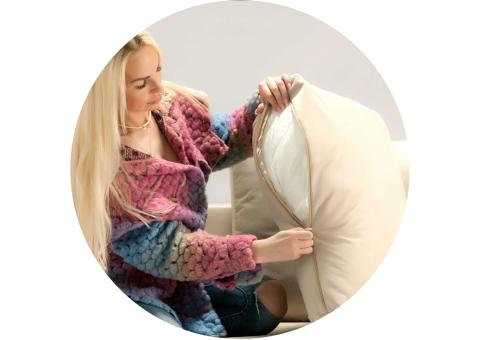 - Duże poduszki wypełniane granulatem piankowym tworzą stabilne oparcie.
