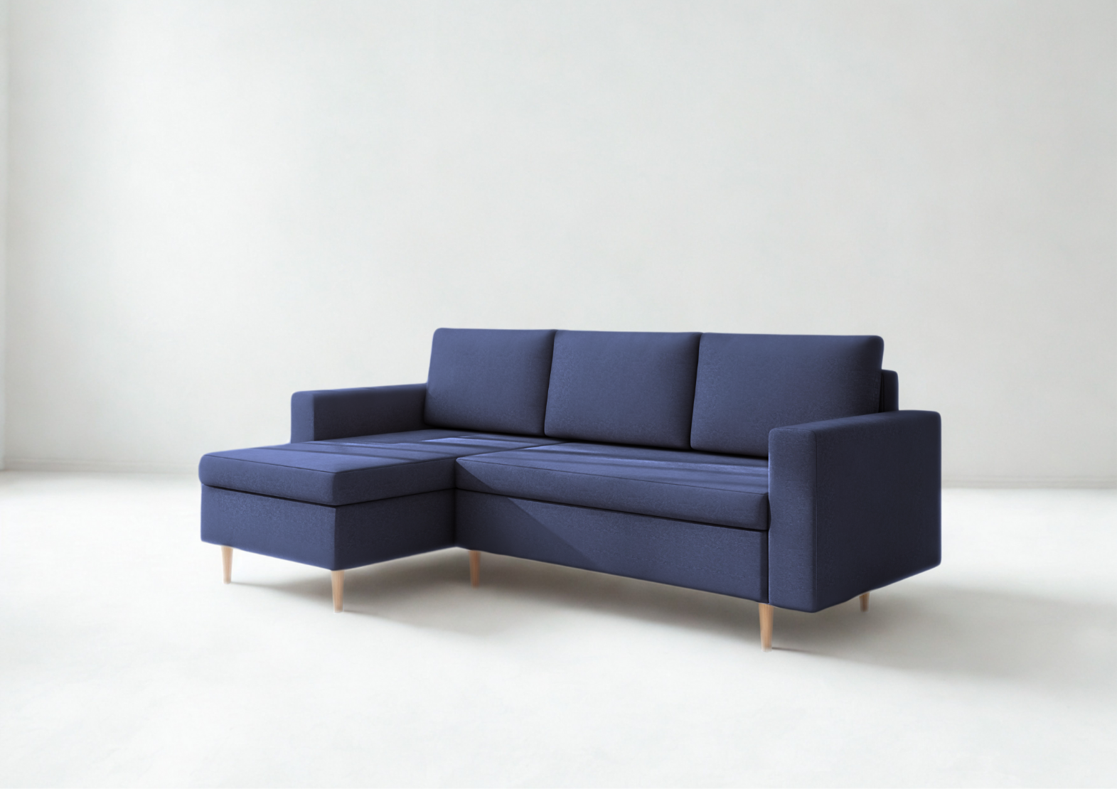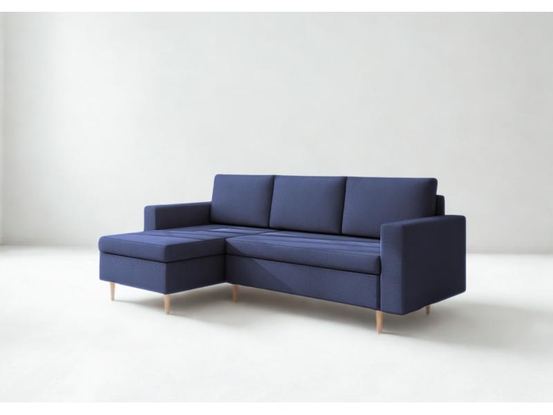 Dane techniczne: Narożnik Rozkładany Lewostronny BEVER Granatowy Funkcja Spania Schowek Salon